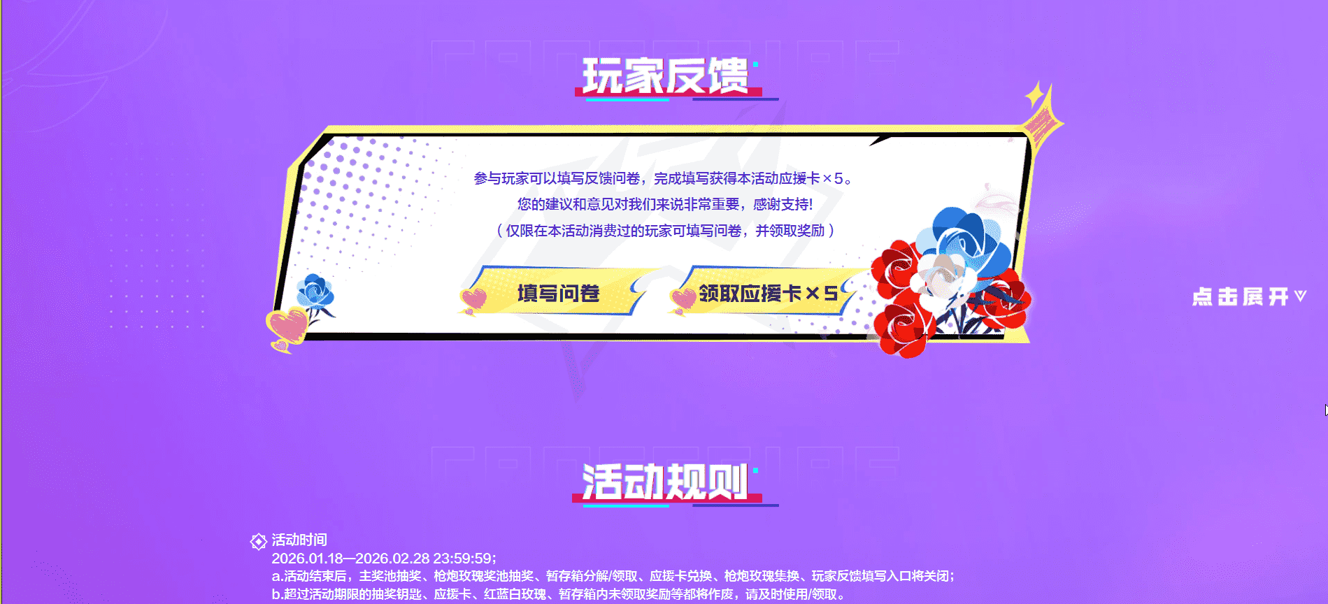 在主奖池每3次抽奖,概率获得红、白、蓝玫瑰中的其中一种玩家使用一组
